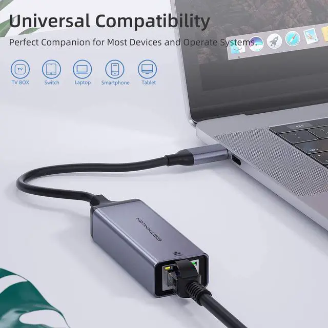 Ethernet Port: USB C Gigabit network adapter is a good accessory to protect or replace the RJ45 Lan port of your expensive computer. Simply adding a standard RJ45 port to your Ultrabook notebook or Macbook Air for file transferring video conferencing gaming and HD video streaming.