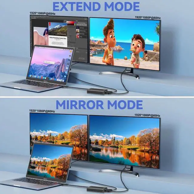 - This hdmi splitter for extended display supports maximum resolution of 1920x1080P@60Hz, let you enjoy high-quality visuals and enhanced productivity across multiple monitors.