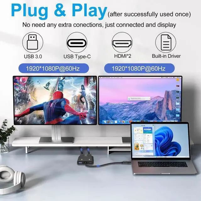 USB 3.0/USB C Dual HDMI Display Adapter - Enjoy High Productivity by Using Multiple Screens!