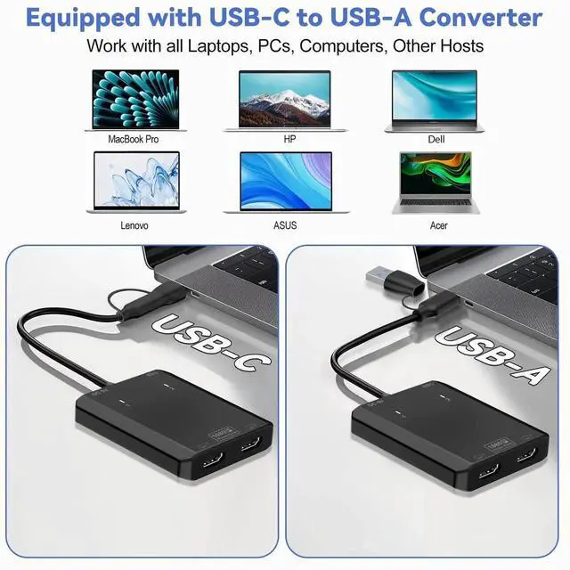 1x USB 3.0/USB-C to Hdmi Splitter for Dual Monitors Extended Display