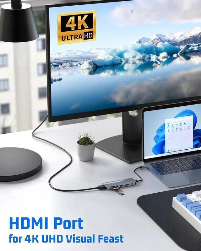 USB C HUB features 100W USB-C charging port, USB 3.0 interface, USB 2.0 interface, PD fast charging interface, 4K HDMI interface, SD / TF card reader slotson. You can connect keyboard, mouse, USB driver, external hard drive to your Type-C device.