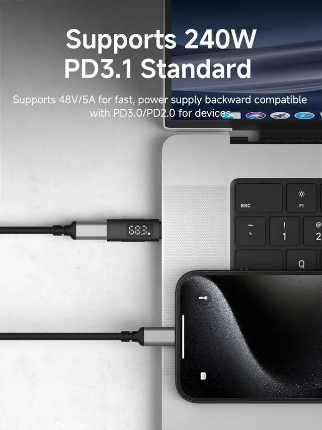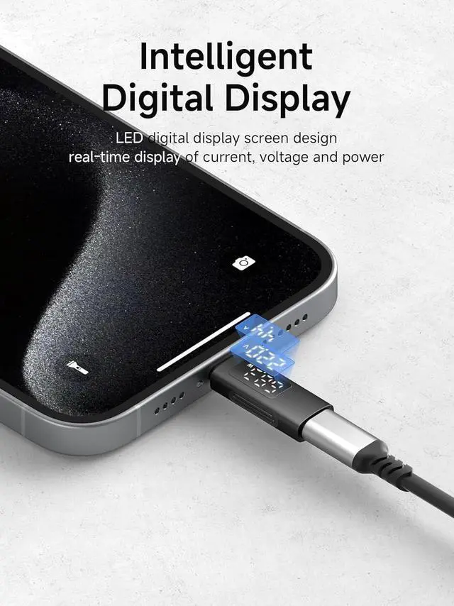 Vszerda LED Display USB C Adapter 240W 80Gbps 8K@60Hz, USB4 V2.0 Connecter fits for Thunderbolt 4/3, iPhone 16 15 Pro Max, Current Voltage Fast Charging Monitoring Display Tester Detector (AA20)