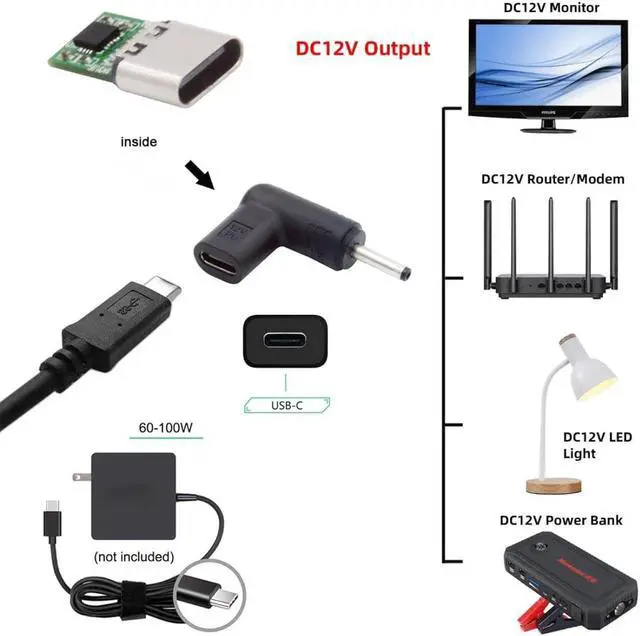 - Use It With The 65W Type-C Charger To Conveniently Charge Your Laptop With Dc 12V Port From A Wall Outlet.