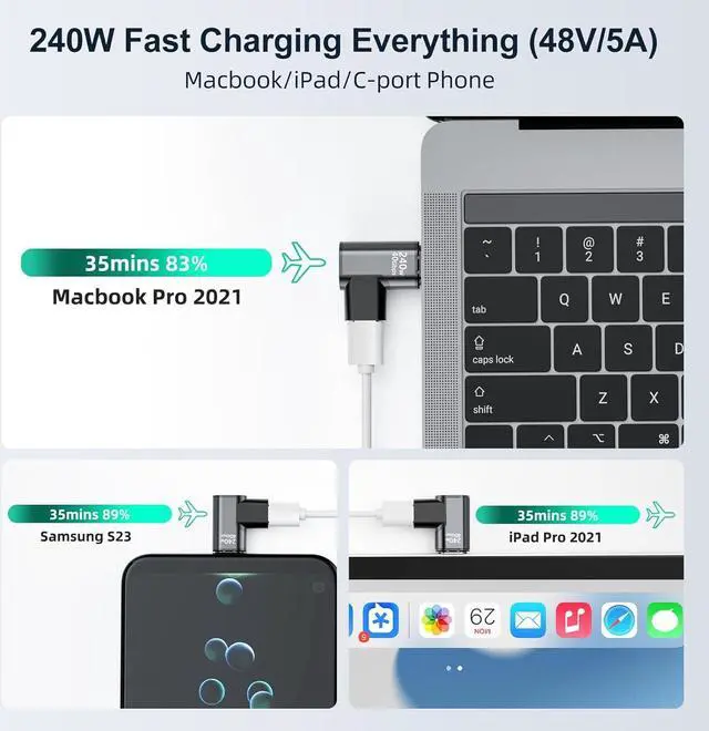 And supports 8K@60Hz HD video & audio output. This adapter will replace your USB C port completely without any sacrifice let you work efficiency in work or study and also enjoy the ultra HD video resolution at any places.???????? [ Wide Compatibility ] This 240w usb c magnetic adapter is premium aluminum alloy shell for a durable design plug and play without driver. Compatible with most USB C devices such as Macbook Pro/Air iPad iMac Steam Deck Nintendo Switch Oculus Quest iPad Pro/Air Surface Book 2 iPhone 15/15 Plus/15 Pro/15 Pro Max Galaxy Pixel Chromebook etc.
