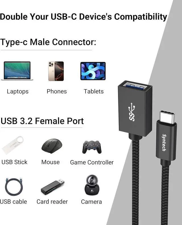 Syntech USB C to USB Adapter 2 Pack USB C to USB 3 Type C to A Thunderbolt 3 to USB Female Adapter OTG Cable Compatible with iPhone 17/Air/16/15 Pro Max iPad mini 6 MacBook Pro Air and More