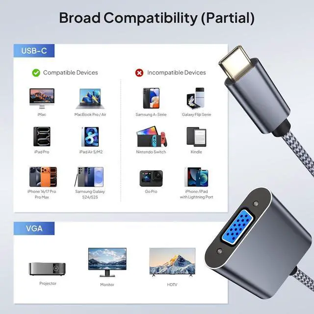 Seamless Connectivity: Effortlessly connect your USBC device to any VGA-equipped display or projector. Perfect for extending your laptop tablet or smartphone screen for presentations meetings or home entertainment.