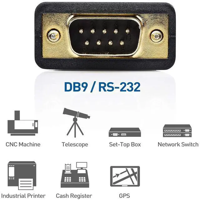 Flexible Device Communication: Utilize this male to male serial to USB C cable for seamless interaction with devices requiring a DB9 connector. For compatibility with different port types consider a DB9 mini gender changer (sold separately).