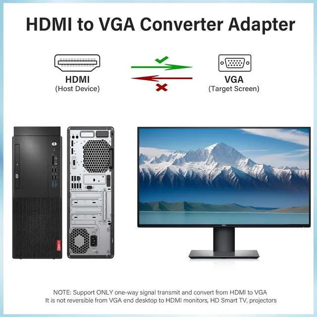 Cable with Chip: HDMI Computer to VGA Monitor Cable has a built-in advanced chip that can convert HDMI digital signals to VGA analogue signals supports hot-swappable and can provide stable data transmission. You can transfer HD video from your computer to your monitor for video streaming or gaming; suitable for extending your desktop or mirroring your monitor.