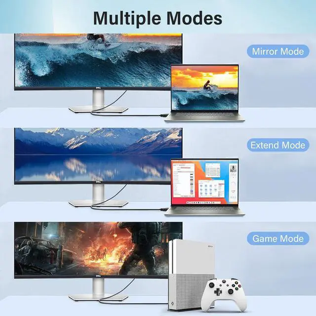 Video Resolution: HDMI to VGA Monitor Cable supports 1080P Full HD video resolution up to 1920x1080@60Hz backward compatible with 720p 1600x1200 1280x1024 for HDTV HD monitor or projector. Supports Mirror Extended and Gaming modes allowing you to transfer high-quality HD video to a larger screen for a superior viewing experience for work or entertainment.