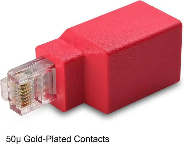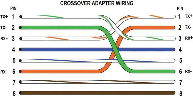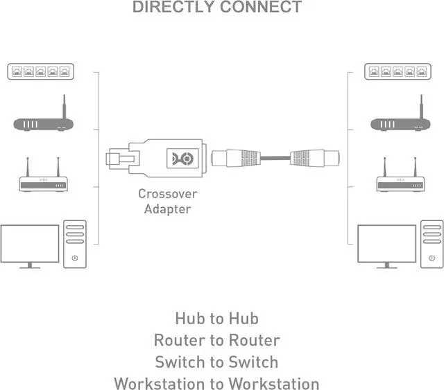 Crossover adapter allows network equipment to communicate with each other directly by connecting a Cat5 or Cat6 cableConnect two workstations together to transfer files or share a printer; Connect a patch cable in the desired length to this adapter instead of using a long or short crossover cableCost-effective 2-Pack adapter converts a standard network patch cable to a crossover cableSuperior construction includes RJ45 connectors with gold-plated contacts in a sturdy housing; Raging red color makes identification easy in a crowded toolkit or desk drawerCrossover wiring reverses the transmit TX pair pins 1 and 2 and the receive RX pins 3 and 6 to allow two computers to communicate (see the wiring diagram above); Both connected devices may require network configuration in order to communicate
