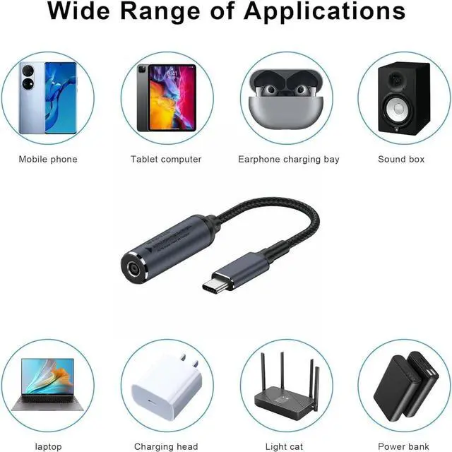 Cable length: 17.4 cm/ 6.8 inch/ 0.57 ftNote: Please do not charge the laptop which above 65W and your power brick must be greater than the laptop power otherwise it will not work. For example your DC power brick is 45W but your laptop is 65W or 90W or above it will not workThe PD65W to USB-C charging cable enables 65W of high power charging stable charging without getting hot so your device is fully charged quicklyhe charging cables are widely used for mobile phones tablets headphone charging bins speakers computers charging heads optical cats rechargeable batteries etcNote: The maximum power input and output of the cable are equal if charging a more powerful device (e. g. a laptop) it is important that the nominal power of the incoming DC power supply meets the minimum requirements of the device