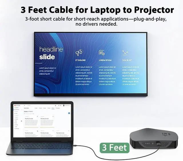 Enjoy Bigger Screen: The 3 feet hdmi-to-vga cable can mirror and extend your device screen from small screen (laptop desktop... ) to big screen (monitor projecor hdtv). Plug and Play. No driver or software installation required. Conveniently connect hdmi male to vga male port no need adapter.
