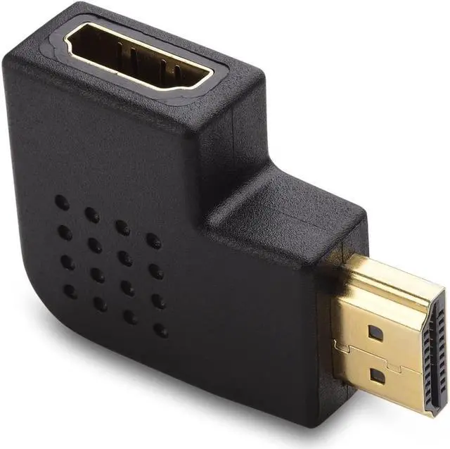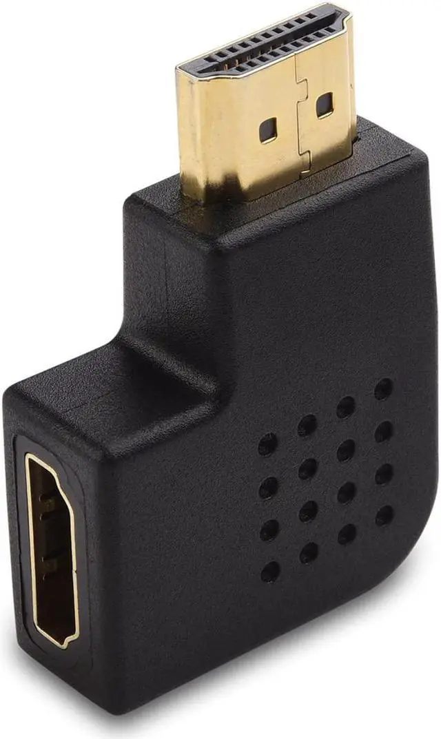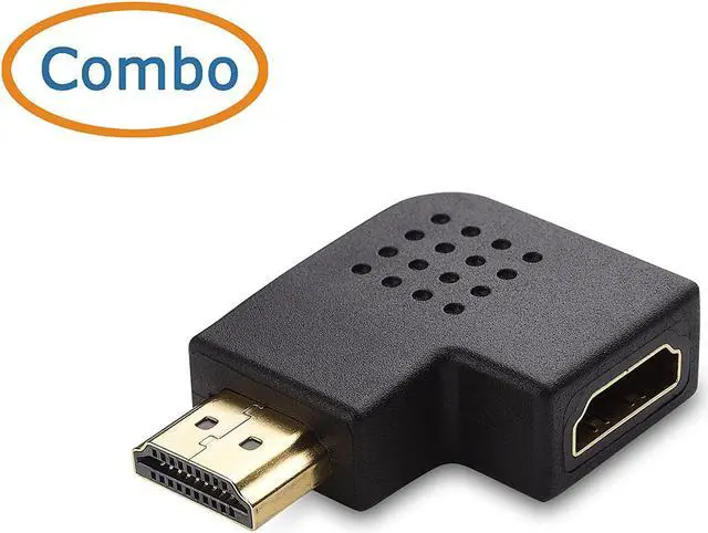 90 degree HDMI adapter connects an HDMI cable to a computer media streamer stick Blu-ray player wall-mount UHD TV monitor or projector with HDMI input; Connect to an HDMI port with little clearance behind your display with this vertical HDMI adapterHDMI angle adapter with a 90 degree elbow functions as an HDMI right angle adapter or an HDMI left angle adapter; Direct the cable up or down depending on the orientation of the HDMI port on your equipment; HDMI cable adapter extends less than 1 inch from the HDMI port to connect a wall mount TVVideo resolution support on HDMI angle adapter up to full 4K including 4096x2160 3840x2160 2560x1600 2560x1440 1920x1200 and 1080p; HDMI 2.0 compatible with HDMI support for Audio Return Channel (ARC) HDMI Ethernet Channel (HEC) 48 bit color depths 32 channel audio Dolby True HD 7.1 audio and 3D video; HDCP compliant for viewing content protected videoHDMI elbow port saver combo-pack reduces strain on the HDMI port of equipment or displays such as a computer monitor or TV; Easily connect a FireTV stick to your TV with this lightweight 90 degree and 270 degree HDMI adapterSuperior construction of HDMI right angle adapter combines gold-plated connectors with an easy-grip surface for reliable signal transmission and easy installation; A lifetime warranty is included with these angled HDMI adapters for peace of mind when purchasing
