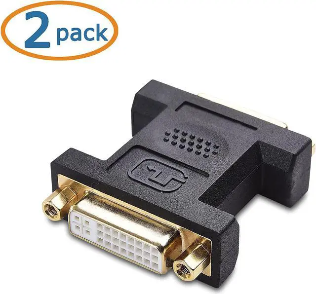 Dual link DVI cable coupler joins two DVI I cables together to create a longer cable; Connect to DVI I cables or DVI D cables in a hard-to-reach area behind a desk with this dual link DVI cable coupler2K Video resolution support of DVI coupler for up to 2560x1600 including HD 1080p 800x600 1024x768 1280x1024 1600x1200 1680x1050; DVI dual link cable 144Hz support with a 144Hz DVI-D dual link cable; Audio must be transmitted separatelyDVI-I compatible DVI 24 5 with a DVI connector 24+5 (29 pins) ports on a video graphics card with a single link DVI port or a dual link DVI cable port; Cost-effective 2-pack of Dual Link DVI cable couplers provides a spare to keep in your IT toolkitDVI to DVI gender changer is compatible with two DVI-I cables or DVI-D cables on both sides to a DVI port; Use the same type of DVI cords on both sides with DVI dual link cable couplers; Connect with single link DVI cables or DVI-D dual link cablesSuperior construction of DVI coupler female to female includes gold-plated connectors in a sturdy housing with easy-grip treads and DVI-I thumb screws for a secure connection