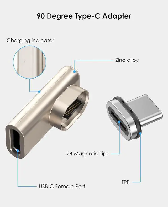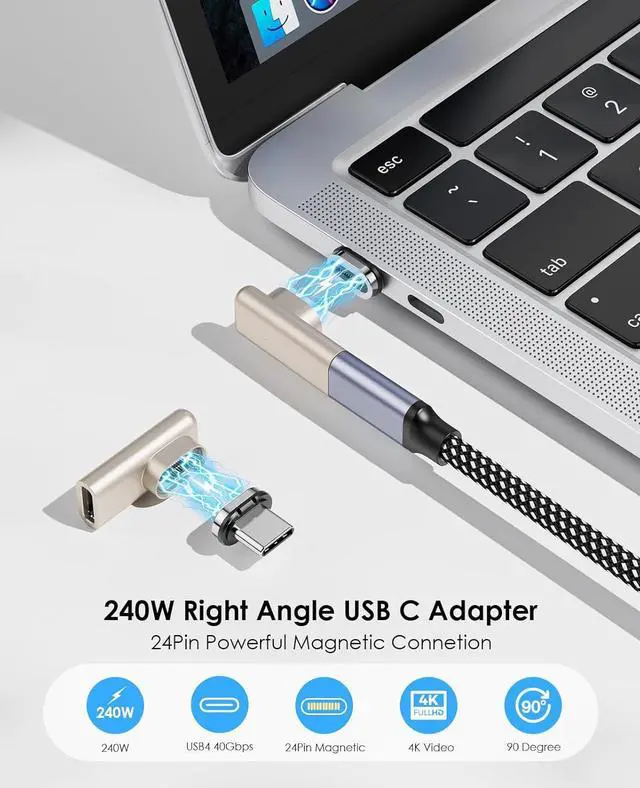 USB C Adapter: The 24-pin 90-degree USB-C Male to USB-C Female Adapter features an innovative magnetic design that reduces wear and tear on your notebooks port from frequent plugging and unplugging. With 24 gold-plated pins it offers a larger contact surface for a more stable and reliable connection compared to traditional 11-pin adaptersFast 40Gbps