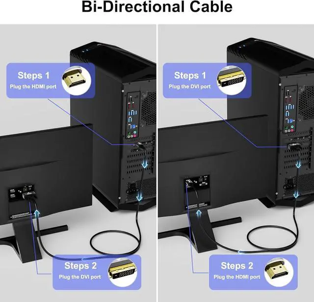 DVI Cable: This is a perfect solution for different interface devices which converts digital HDMI signals into analog DVI signals. Also connects an DVI source to HDMI device such as a Blu-ray player TV PS3/4 or Xbox One. 1080P Full HD ResolutionConable HDMI to DVI cable supports video resolution up to 1920x1080@60Hz and backward compatible with 720P 1600x1200 1280x1024 800x600 1024x768. Plug and play no additional driver or software installation needed.
