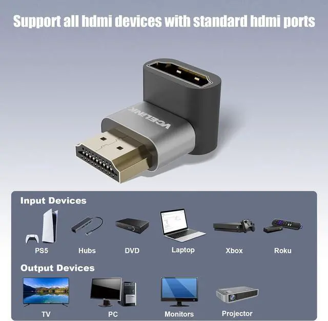 Narrow Spaces: The right angle adapters provide upward or downward angles easily extending short distances. Perfect for tight spaces between your device and the wall prevent HDMI cable bending and breakage. The high-quality chip greatly reduces heating issues from prolonged use enhancing its lifespan.