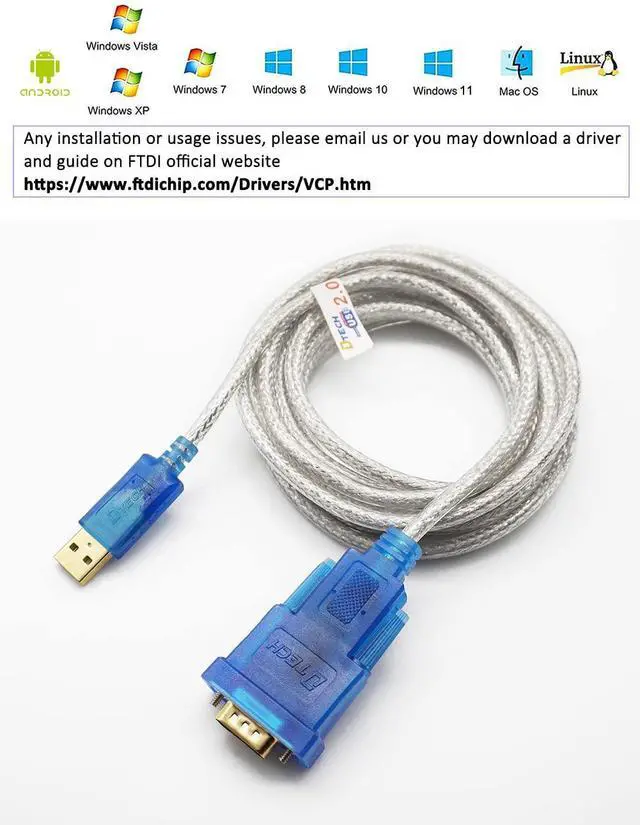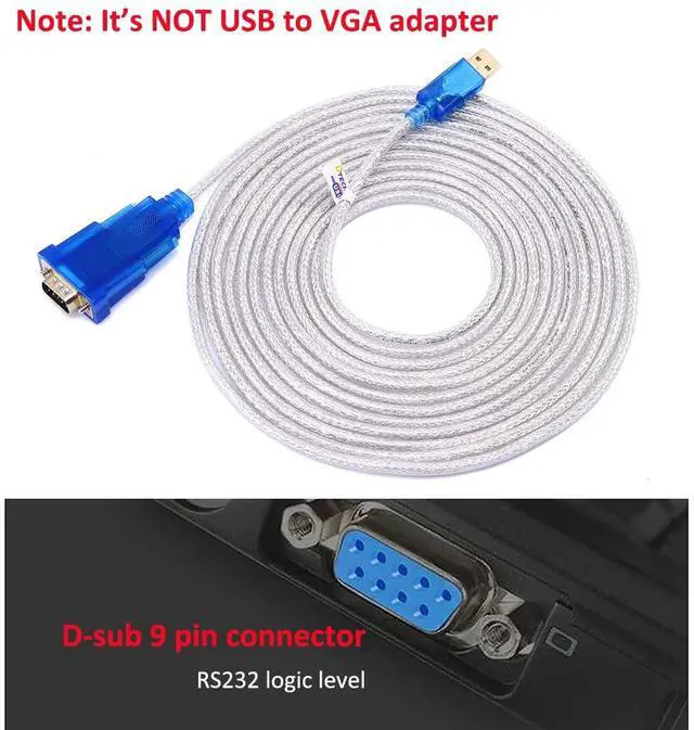 (NOT 15 pin-VGA-Monitor-Cable) It's Male Serial to USB cable (9 pin com port to USB A male) that allows your PC to connect RS-232 serial devices and programs that communicate through COM portsFT232 FTDI chip USB to RS232 serial adapter is designed for connecting serial devices such as DB9 equipped PC router GPS Programming machine barcode label writer serial modem digital camera card reader palm PC and digital organizer etc6 ft USB to RS232 cord for Windows 11 10 8.1 8 7 Mac OS 8 or higher Linux 2.4. 0 and later ( 9 wire pinout: