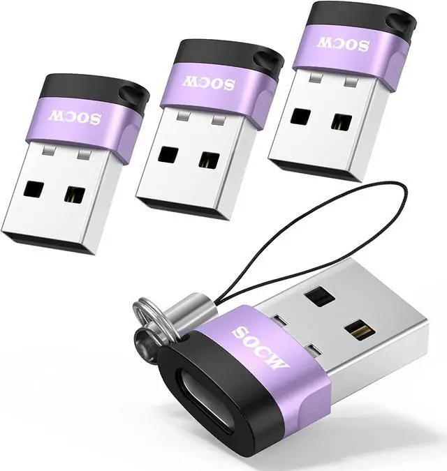 USB C Female to USB Male Adapter 2.0 (Purple 4 Pack)