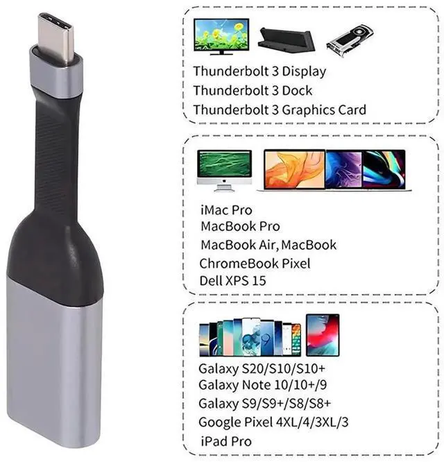 This adapter allows you to mirror your laptop display to your Displayport-enabled TV or display; This Type-C adapter is widely compatible with Most of USB-C Devices (Mainly Laptops), Such as Mac Pro 2018-2025,XPS, Chrome Book and other DP Alternated Mode Supported Devices, Also work for DP Alternated Mode phone and tablet, backward compatible with Thunderbolt3/4.