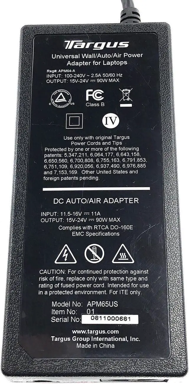 Genuine Targus Universal Wall Auto Air Power Adapter for Laptops APM64-A APM65US