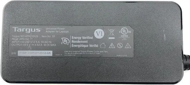 Genuine Targus AC DC Adapter 90W Model APA30US 19.5V with "3H" Tip w/Cord OEM