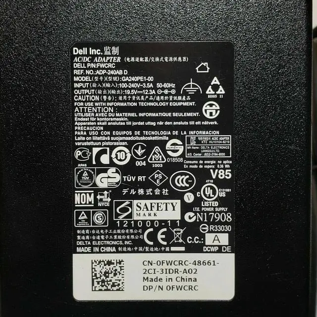 OEM Dell GA240PE1-00 AC Adapter Laptop ADP-240AB D FWCRC 19.5V 240W For Dell Precision with Power Cord