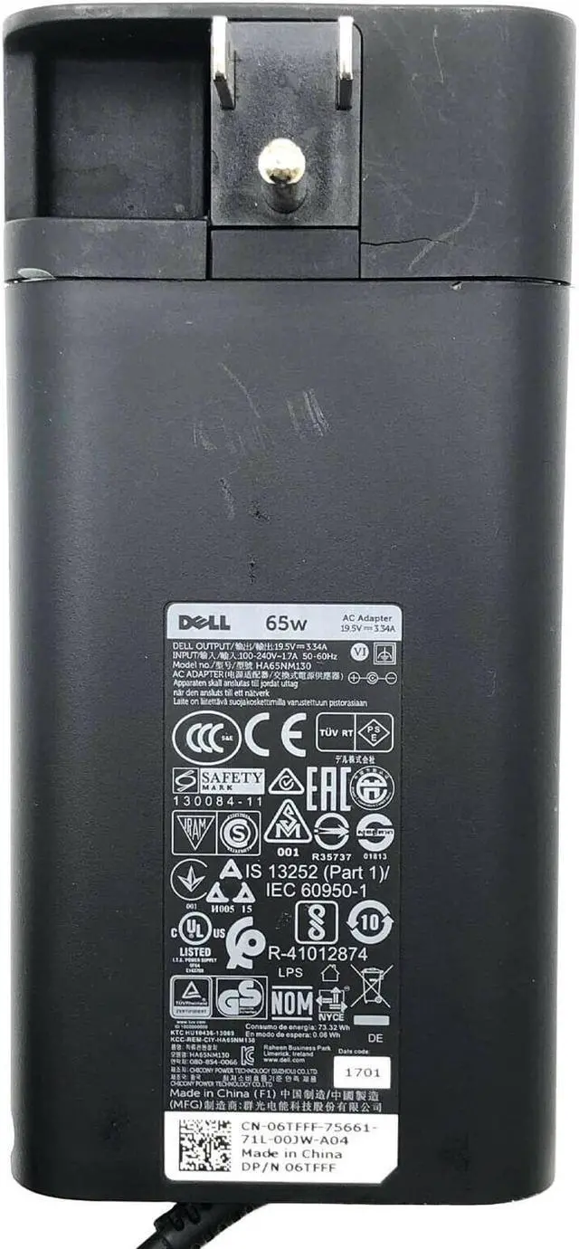 Genuine Dell HA65NM130 AC Adapter 19.5V 3.34A Laptop Charger 06TFFF 65W OEM