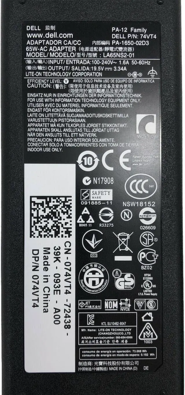 Genuine Dell HA45NM140 AC Adapter 19.5V 3.34A Laptop Charger 070VTC w/PC OEM