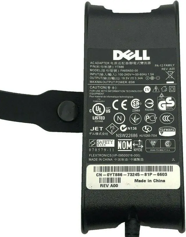 Genuine Dell HA65NS1-00 AC Adapter 19.5A 3.34A Laptop Charger YT886 65W w/PC