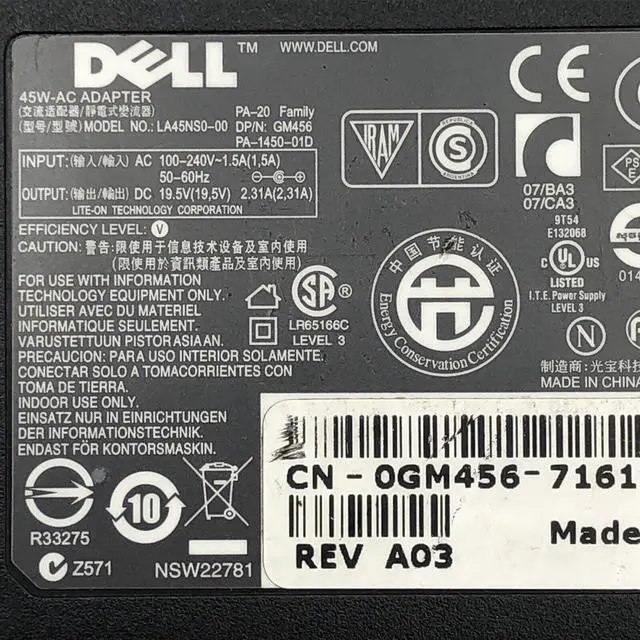 MPN: LA45NS0-00, GM456, PA-1450-01D, 0GM456, CN-0GM456, PA-20, PA-20 Family, DP/N: GM456