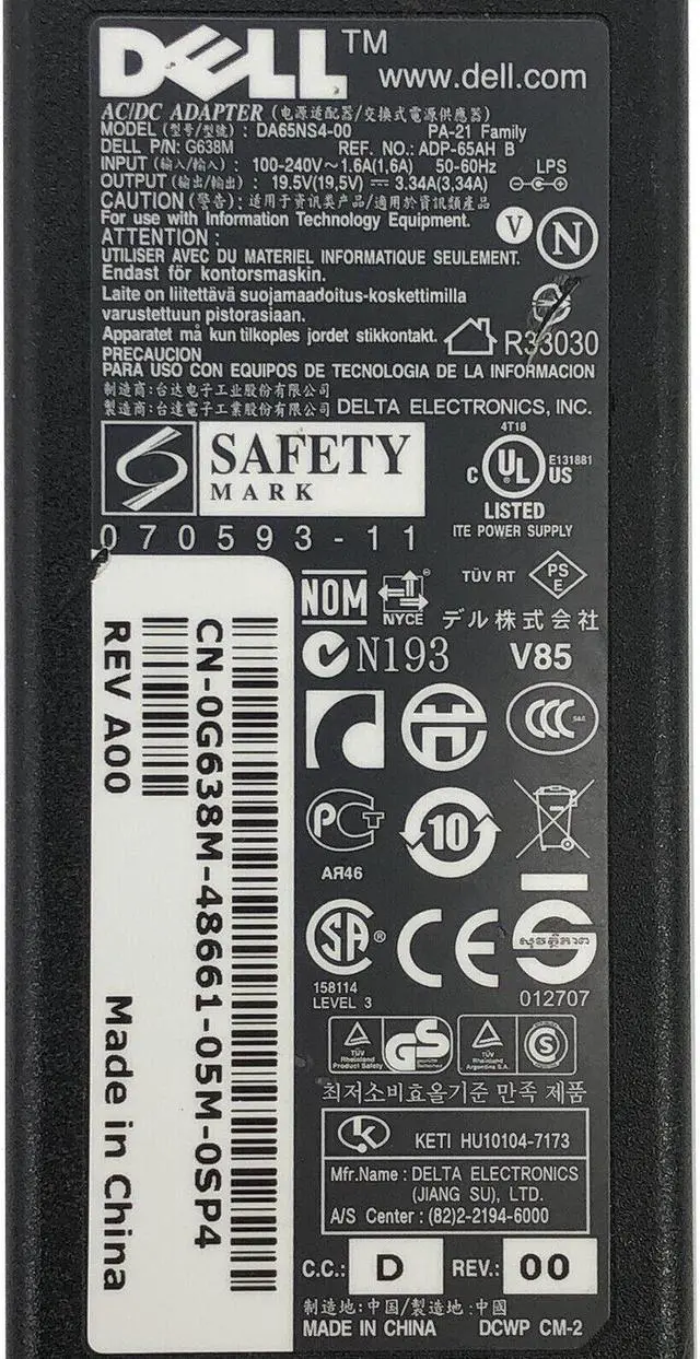 Genuine 65W Dell DA65NS4-00 AC Adapter Charger ADP-65AH 19.5V 5.5mm w/PC