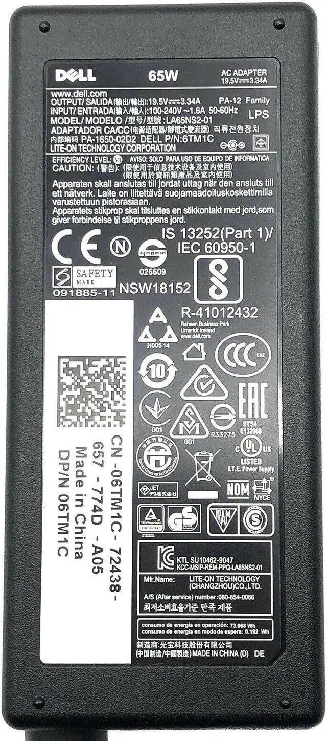 Genuine Dell Chromebook 13 7310 P66G AC Adapter Charger 19.5V 3.34A 65W w/PC