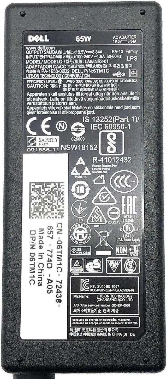 Genuine Dell Inspiron 17 3721 17R 5720 AC Adapter Laptop Charger 65W w/PC OEM