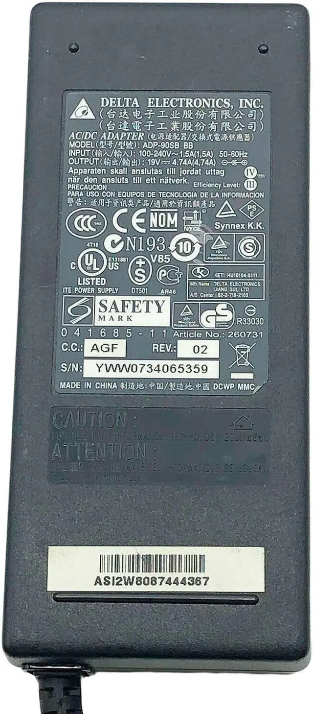 This adapter is tested and guaranteed to be fully functional. The body may have minor cosmetic flaws, dust, scratches, etc., that will not affect its functionality. We thoroughly test our adapters for broken or twisted wires and properly working power jacks. We also make sure there are no cracks or internally loose particles. We sell only Brand Names, Genuine AC adapters. These adapters are manufactured with the top quality materials and include multiple smart features, like safeguarding against IV - incorrect voltage, SC - short circuit, IO - internal overheating, etc.