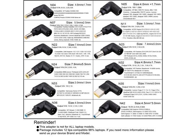WHAT YOU GET: Universal laptop charger adapter with DC cable, AC cord, 12 tips, Instruction, 2 years guarantee and friendly customer service.