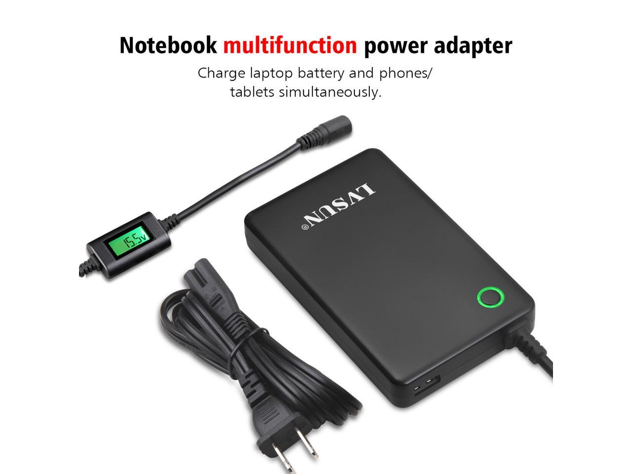 VERSATILE AND SAFE. Use our laptop charger power up your laptop, charge its battery and tablet/mobile simultaneously. Self-adjust current prevent over charging, over voltage and overheating.