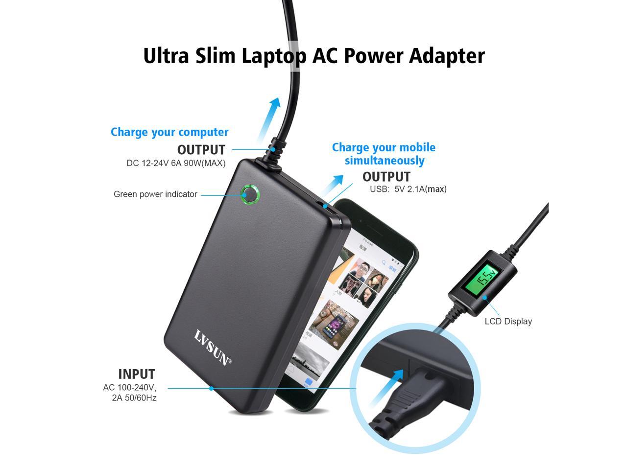 90 Watt Ultra Slim Universal Laptop Ac Adapter Notebook Power Supply with 12 Multiple DC Tips Fit for HP DELLL Lenovo Thinkpad Sony Compaq Asus Acer Toshiba Samsung Etc