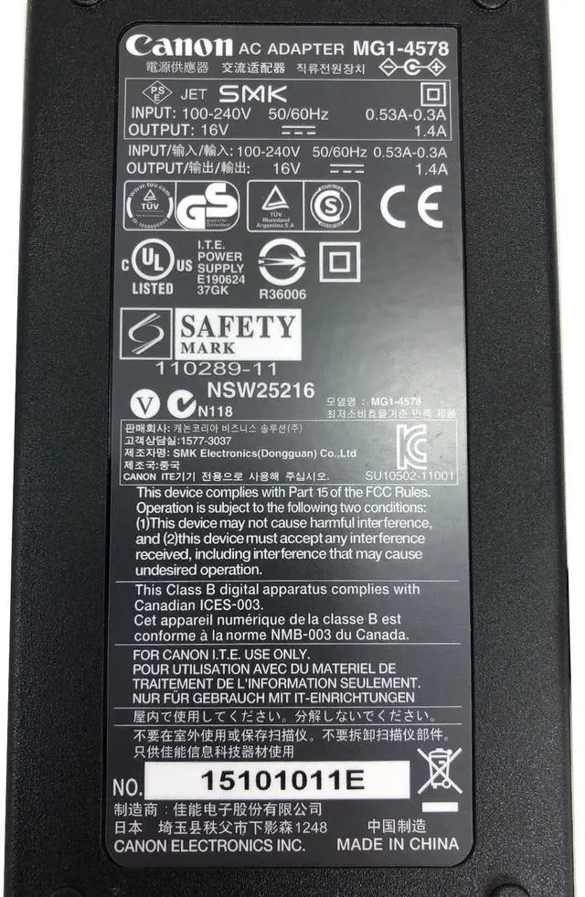 Input: 100-240V 50/60Hz 0.53 - 0.3A