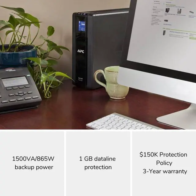 APC UPS 1500VA Battery Backup Surge Protector, BR1500G Backup Battery Power Supply with AVR