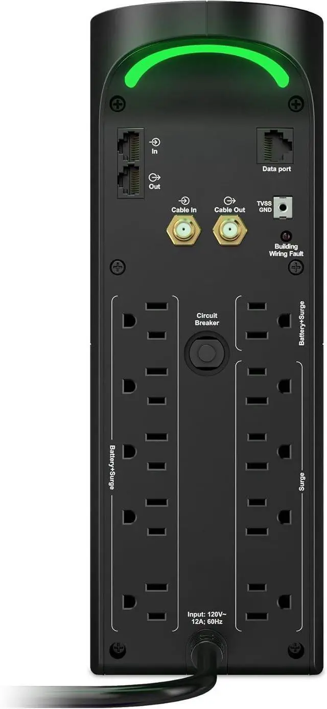 The Back-UPS Pro Gaming UPS by APC is a line-interactive sine wave UPS that combines surge protection and Automatic Voltage Regulation (AVR) with the advantages of a backup battery, offering reliable power protection for casual and intense gamers alike. The APC gaming UPS features customizable ambient LED lighting, a unique interactive LCD display, and 3 USB charging ports; plus, it keeps standard features like a hot-swappable and user-replaceable battery, dataline surge protection, and a USB interface that works in tandem with APC's PowerChute Personal Edition software (PC only). The APC Back-UPS Gaming series is the perfect gaming power accessory to protect your game console and/or premium gaming system, and is an important gaming accessory for any console video game or PC gaming environment.