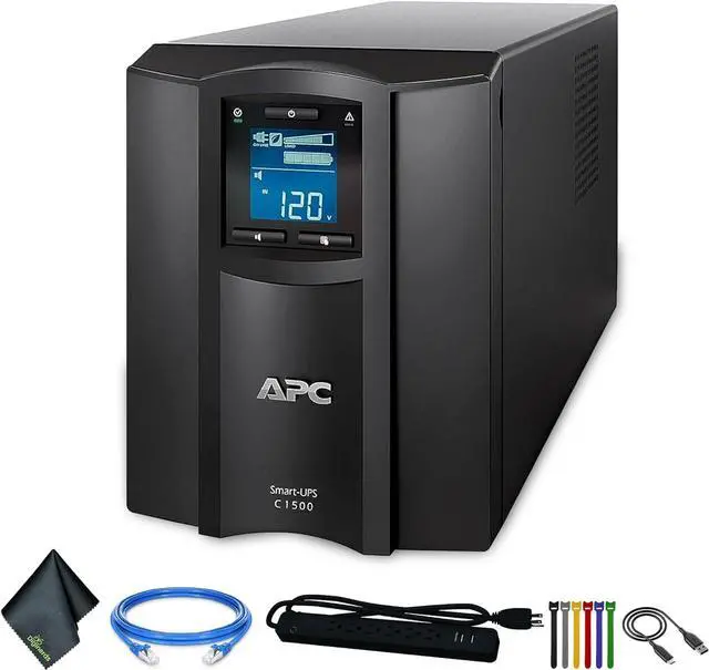 This Bundle Includes: APC Smart-UPS C Battery Backup & Surge Protector with SmartConnect (SMC1500C), USB to USB-A 2M, Loop Straps, Surge Protector, Cleaning Cloth, Ethernet Cable