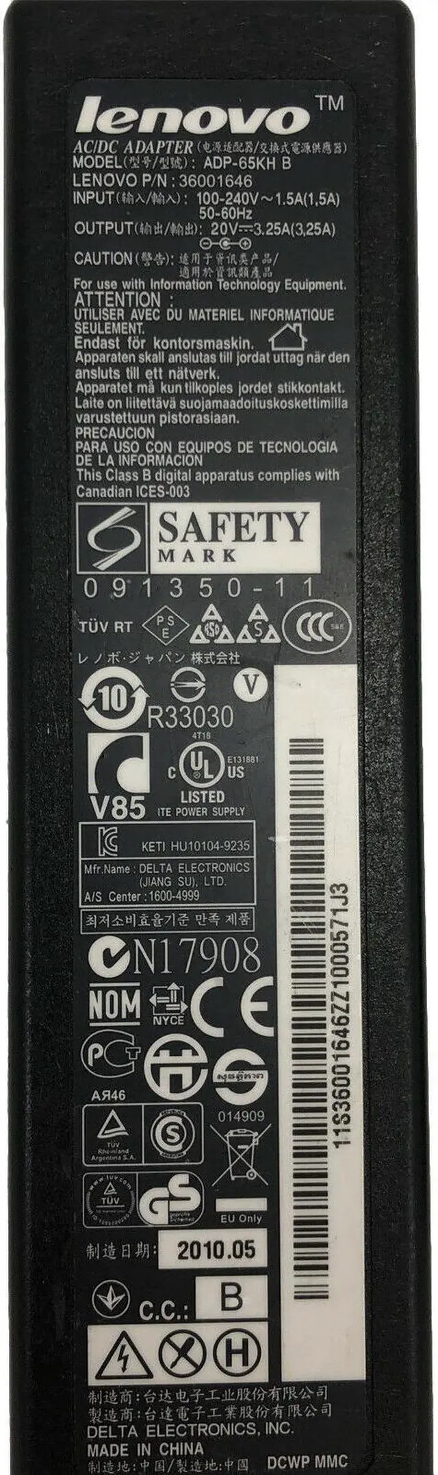 Genuine Lenovo AC Adapter Charger 65W w/PC for IdeaPad U110 U300 U400 U455