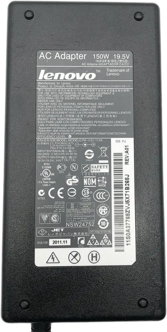 Genuine Lenovo 0A37768 AC/DC Power Supply Adapter 19.5V 7.7A 150W OEM w/PC