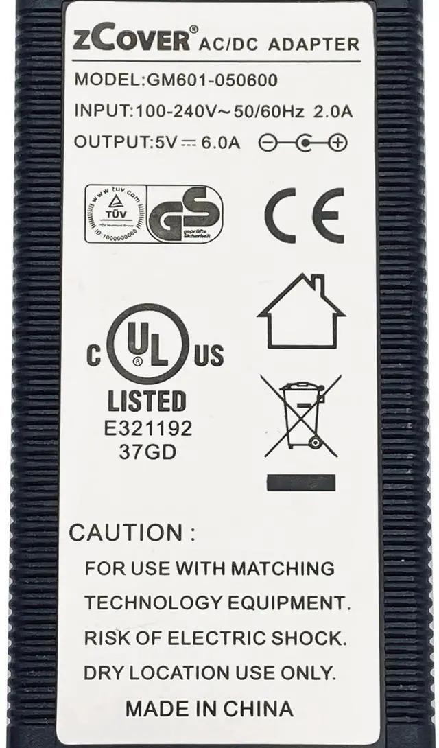 Genuine zCover GM601-050600 AC/DC Adapter 5V 6A 30W Power Supply 5.5x2.5mm