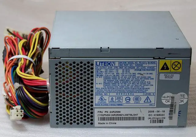 Condition Note: Used IBM ThinkCentre 310W Power Supply FRU: 24R2596 Lite-On Model: PS-5311-7M (PS-5311-7M-ROHS) IBM P/N: 24R2599