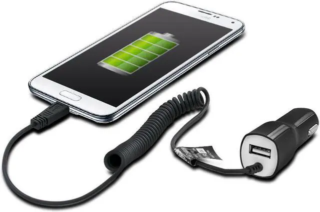Mobile power when you needitProduct InformationThis Rapid 2.1A Premium Micro USB Car Charger with USB Port makes iteasy to keep your portable devices charged while on the go. Simply plugthe charger into your car's DC port and plug your device into thecharger. It includes a built-in microUSB cable for charging compatiblemicroUSB devices, and also includes a USB port so you can easily plugin and charge a variety of other USB-powered devices using your owncharging cable. The stylish, black finish easily blends in with yourcar, and the small, portable design makes it easy to tuck away when notin use. Product Features Don'trun out of battery life on your mobile devices while on the road Chargerplugs directly into your car's DC port and features a stylish, blackfinish that easily blends in with your car's interior Built-inmicroUSB charging cable is designed for compatibility with mostmicroUSB-powered devices Alsoincludes a USB port for easy connectivity of other USB charging cables(Charging cables not included) Indicatorlight lets you know when your device is plugged in and charging Small,portable design makes it easy to tuck away the charger in your glovecompartment or center console when not in useSpecifications Color: Black Compatibility: MicroUSB-powered devices or other USB-powered devices (additional chargingcables not included)Item Condition: New