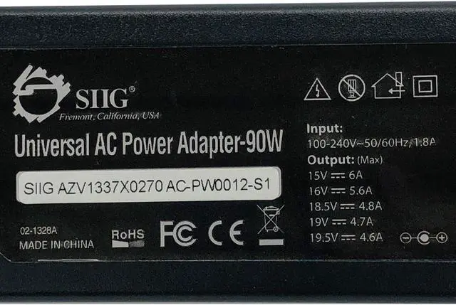 Genuine SIIG AC-PW0012-S1 Universal AC Power Adapter 90W 7.4x5.0 mm with Cord