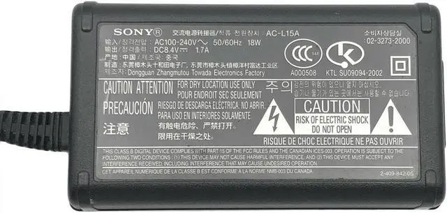 Genuine AC Adapter SONY AC-L15A for AC-L15 AC-L15A AC-L15B DCR-TRV250 W/Cord