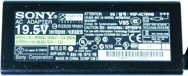 Original Sony VAIO VGP-AC19V48 ADP-65UH E R33021 65W AC Adapter Charger No Cord